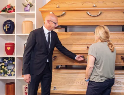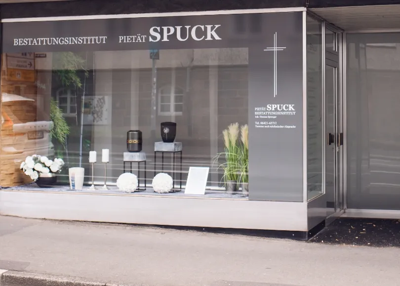 - Bereitstellung von Särgen, Urnen, Bestattungswäsche und Zubehör (Ausstellungsraum)